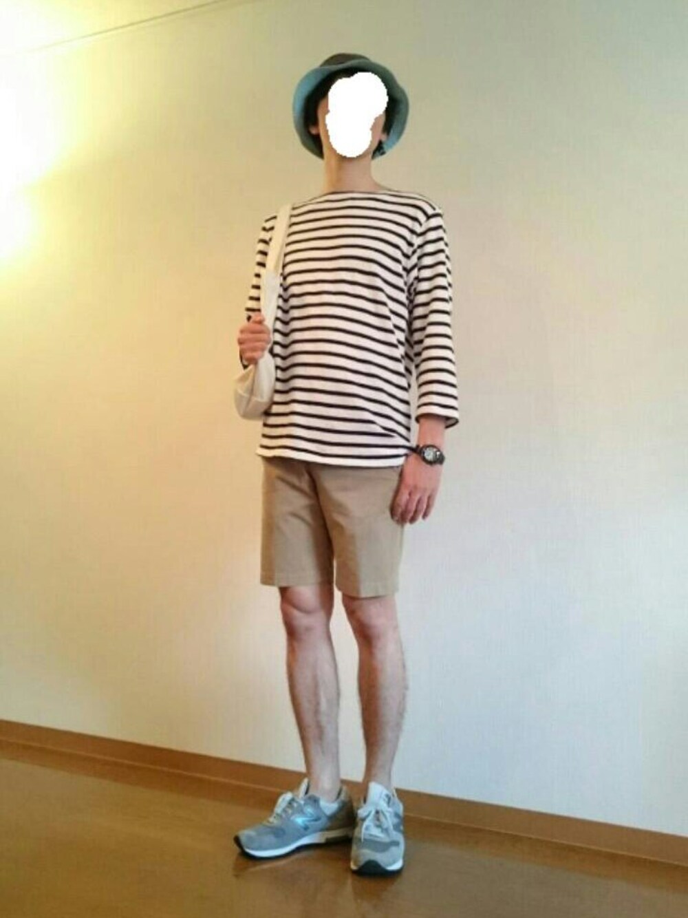 ここ最近妙に肌寒いのに、スウェットやら春物のブルゾンをクリーニングに出してしまったのは失敗でした。 <アイテム情報> 7部袖バスクシャツ:グリーンレーベルリラクシング ハーフパンツ:バーニーズニューヨーク ハット:ノーブランド トートバッグ:無印良品 腕時計:インディペンデント スニーカー:ニューバランス M1400 <point> バスクシャツとベージュのハーフパンツを組合わせたシンプルコーデ。 全体的な色合いとしてはクリアーな印象ですが、グレーやベージュといった淡い色のアイテムをいくつか身に付けておりますので、落ち着きの兼ねたシンプルカジュアルコーディネートになったかと思います。 閲覧していただき、ありがとうございます。