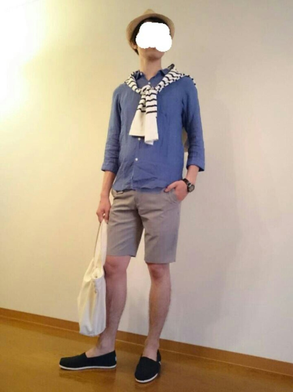 今日、世にも奇妙な物語がやっていたので観たら、やっぱり面白いものですね。 個人的には、世にも奇妙な物語は好きなテレビですね。 <アイテム情報> 7部袖シャツ:アーバンリサーチ バスクシャツ:チャオパニック ハーフパンツ:グリーンレーベルリラクシング 中折れハット:ノーブランド トートバッグ:無印良品 腕時計:インディペンデント スリッポン:トムス <point> ブルー×グレーの寒色系コーデ。 中折れハット、ハーフパンツ、麻のシャツ、スリッポンと夏らしいアイテムとブルー系の色合いで、季節感のある爽やかな着こなしになったかと思います。 閲覧していただき、ありがとうございます。