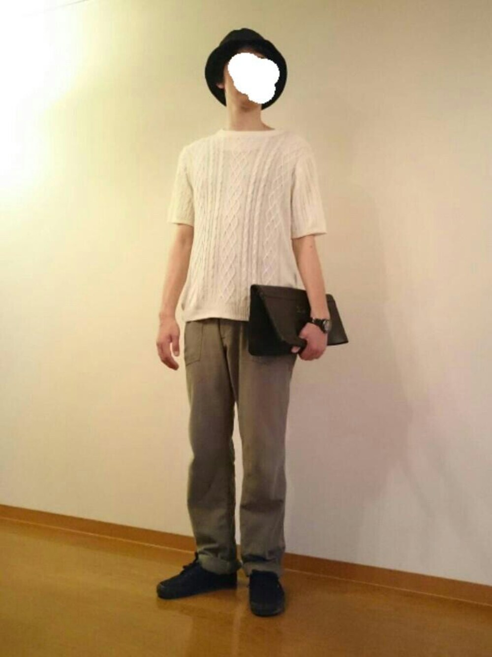 しばらく体調不良で休んでました。 気温の変化にやられたのでしょうか、皆様もお気をつけて下さい。 改めて投稿を再開します。 <アイテム情報> ケーブル半袖ニット:モンキータイム ベイカーパンツ:グリーンレーベルリラクシング ハット:ニューハッタン クラッチバッグ:エディフィス 腕時計:インディペンデント スニーカー:バンズ <point> 麻の半袖セーターとベイカーパンツを組み合わせたカジュアルコーデ。 白のセーターとカーキのベイカーパンツの組み合わせて、フレッシュでカジュアルな着こなしになり、また全体的にゆったりとしたサイズ感でカジュアル感の強いコーディネートになったかと思います。 閲覧していただき、ありがとうございます。