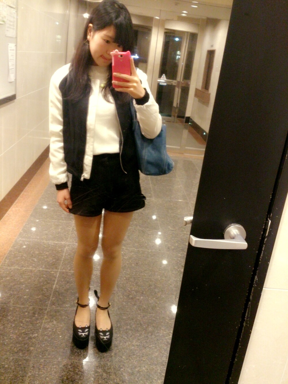 お気に入りは猫の靴(ฅ'ω'ฅ) ハイネックトップス/WEGO ショートパンツ/jouetie ジャケット/ノーブランド ネックレス/OZOC 厚底/LDS