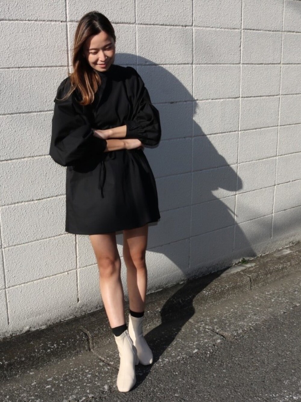 Per sist enceのワンピース「2WAY ボリュームスリーブ コットン チュニックブラウス/ミニワンピ」を使ったコーディネート