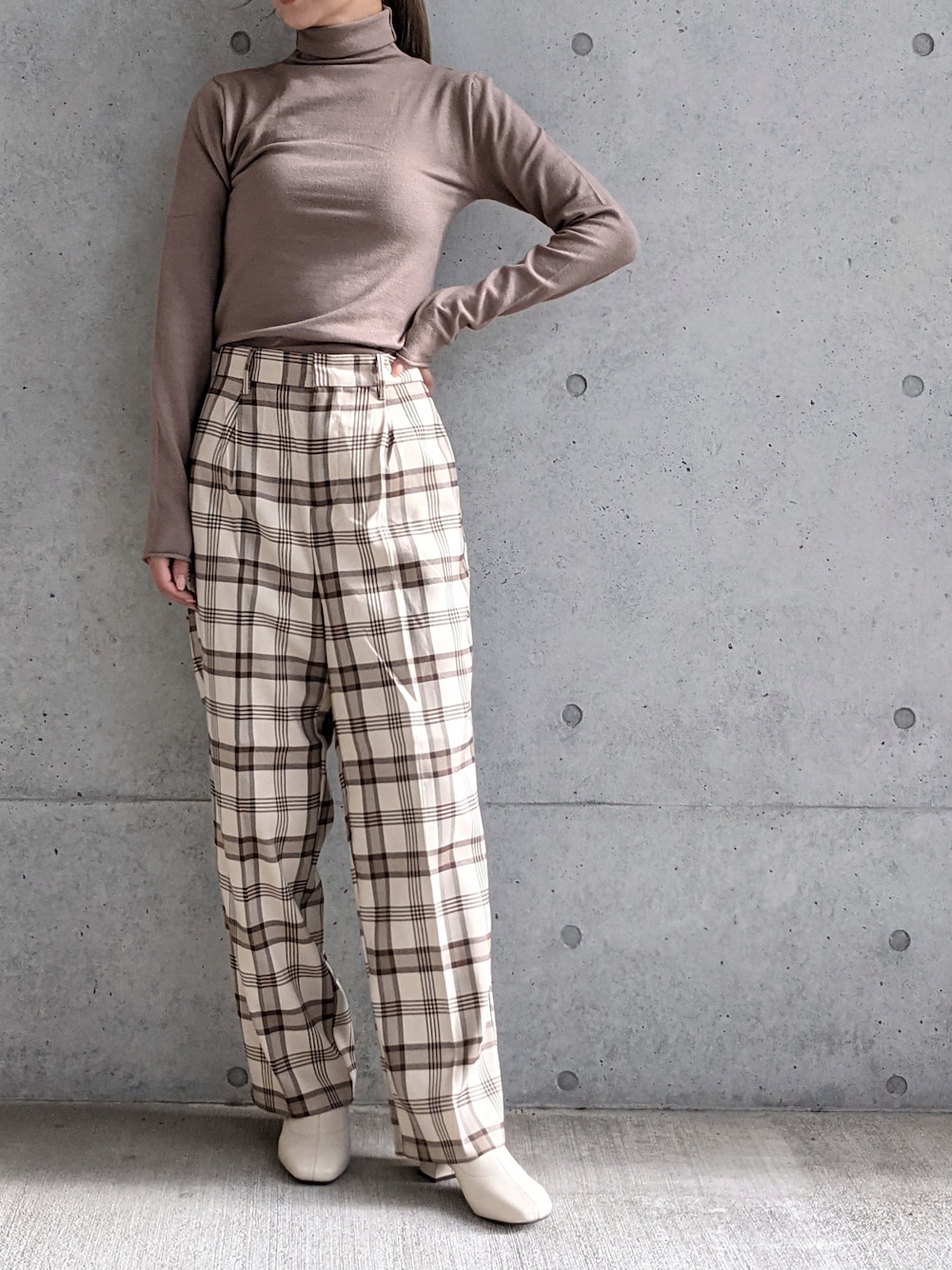 【in stock】 ・ ✔︎ 天竺編み ハイネックプルオーバー mocha.black.ivory.purple/free ¥3,465- ・ ✔︎ 起毛チェック ストレートパンツ beige.gray/free ¥5.500- ・ Instagramアカウント→ @per_sist_ence_official
