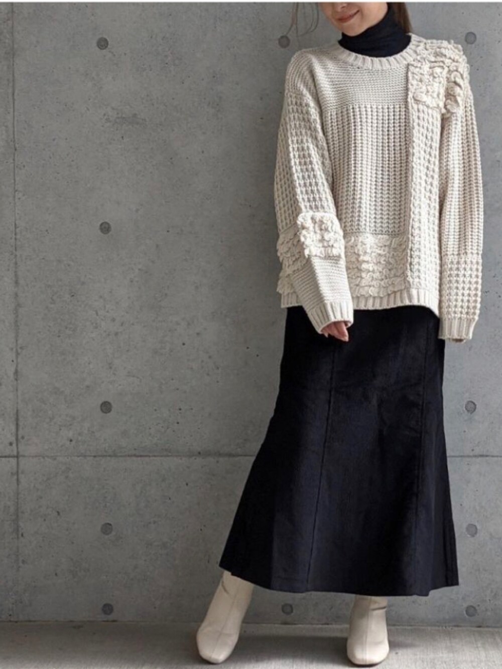 Per sist enceのニット/セーター「Per sist ence/パーシエンス 編み地切替ニットプルオーバー」を使ったコーディネート