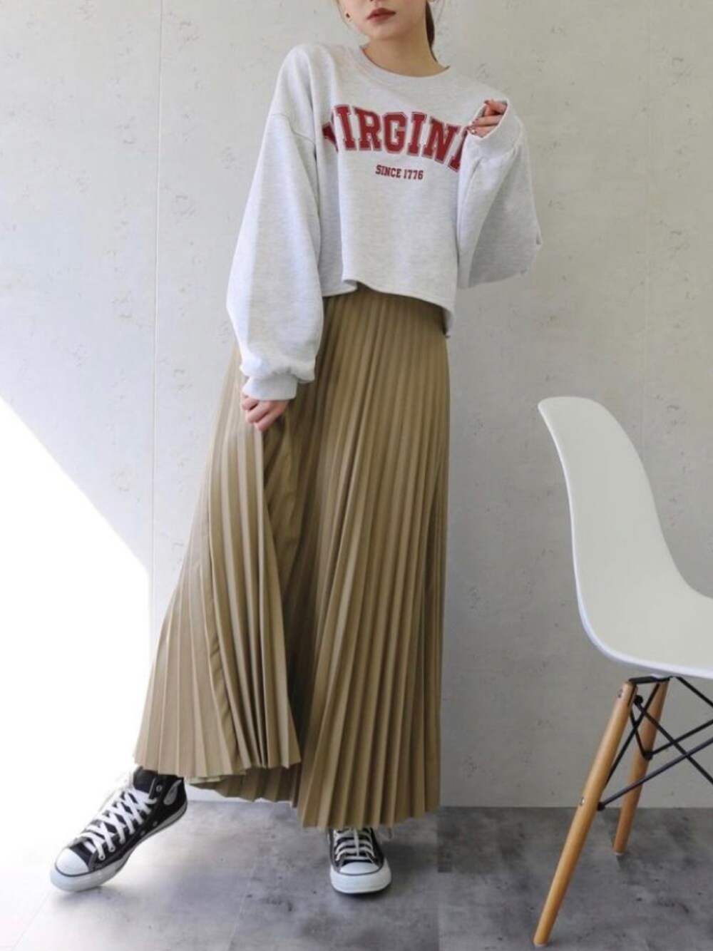 【sale】 ・ ✔︎ 裏毛 カレッジロゴショート丈プルオーバー white1.white2.grey1.grey2/free ¥3.520(time sale price) ・ ✔︎ フェイクレザー プリーツスカート beige/free ¥2.640(time sale price) ・ Instagramアカウント→ @per_sist_ence_official