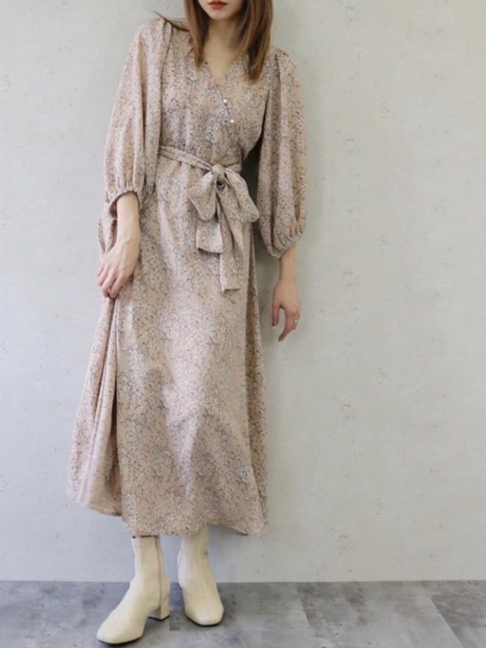 Per sist enceのワンピース「カシュクールボタンデザインワンピ 小花柄共リボン付/洗濯可」を使ったコーディネート
