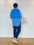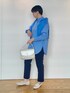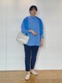 ブルー系にまとめてみました! 小物も白で統一です🤍 テーパードパンツは、ストレッチがかなり効いているので、オフィスワークにも小さいお子さんがいるお客様にもおすすめです!