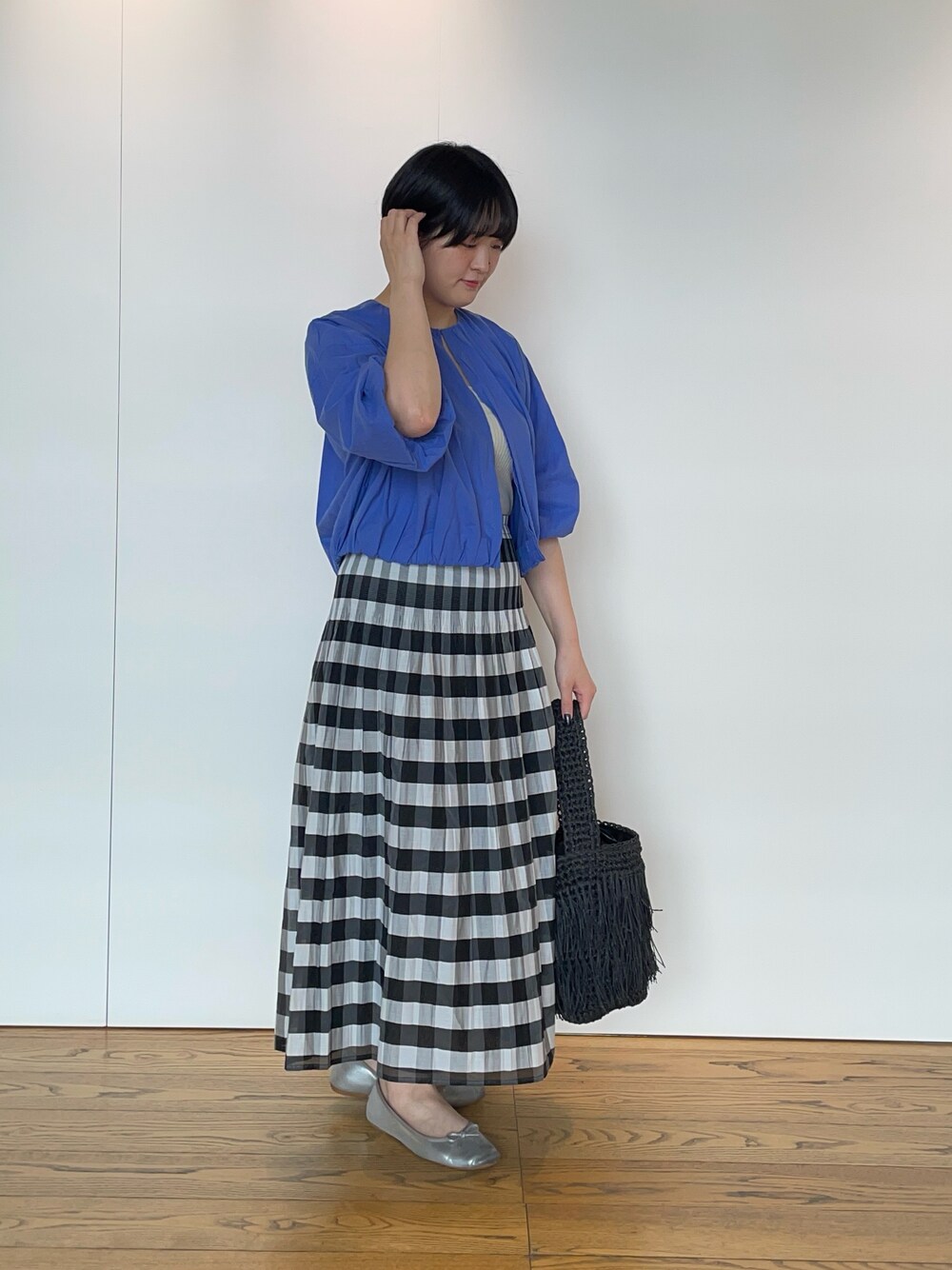 綿100%のコットンブルゾンは、中にタンクトップを着て1枚着にするのもおすすめです🫶 スカートはウエストゴムで楽々履けちゃいます😉