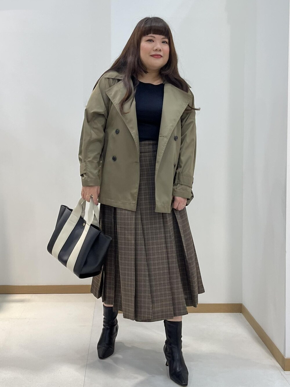 Asa(ROPE' FKD宇都宮)のブーツ「【雑誌掲載】スクエアトゥストレッチショートブーツ」を使ったコーディネート