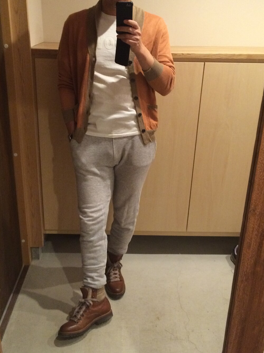 同じブーツで夏仕様。 カーディガン ドルモア T-シャツ アローズ パンツ 失念 ブーツ クチネリ