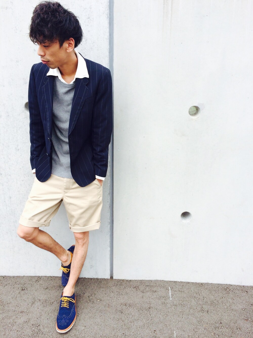 二次会コーデ♪ ハーフパンツをロールアップして ショートパンツに\(^o^)/ 遊び心を盛り込みました( *`ω´)