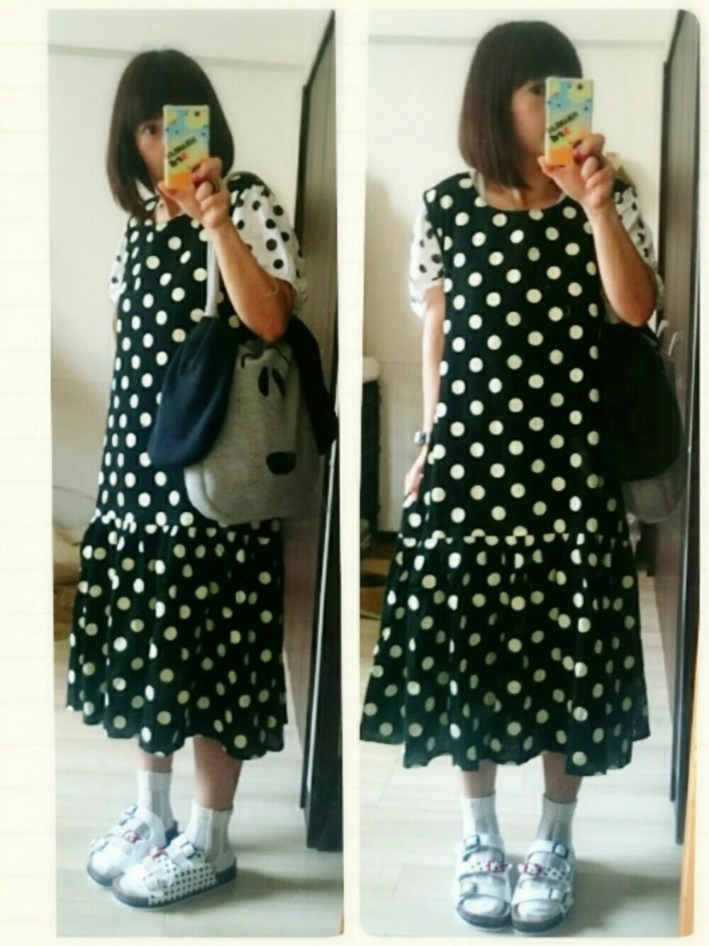 みはるのワンピース「ドット柄フリルへムワンピース2327」を使ったコーディネート