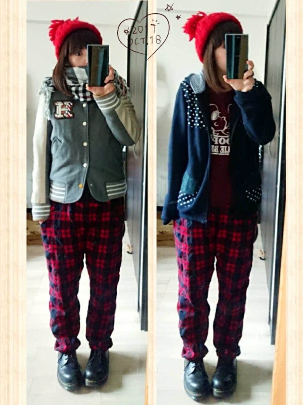 今朝の気温は家を出るとき5℃でした。 秋は、どこ行ったんだろう。 寒すぎて重ね着。でもまだ11月になるまでニットは着ない!!という変な決まりを作っているのでした(笑) スヌーピーのスウェットにスノウピーのパーカー。 キャンスパのお尻ペペさんウール赤チェックパンツ。 …に、フラボアのスターを着たのでモコモコ着ぶくれハンパなかったです。 スターは実は細身のコンパクトサイズ。 ケンシロウのようにボタンが弾けとびそうですね。苦しかったです。 ニット帽は5年目に突入! ポンポンがボサボサになってきてる… どうやって直したらいいのか。 そしてストールぐるぐる。あったか。 ニット帽は建物の中では脱ぎました。 こっちは外は激寒でも中があったかいのです。 地下鉄がすぐそばだったり、外回りがなければ、もう少し薄着でもいいのに…ってぐらいです。 はー、ラーメンとたこ焼きと餃子食べたい←