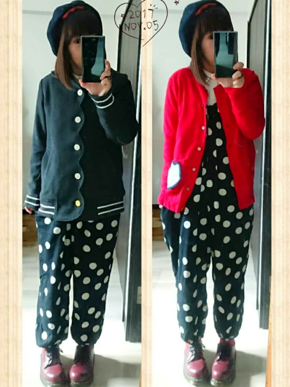 古着で激安で見つけた、サボンのドットサロペット。 裏地もしっかりついてて、中にタイツを履いても静電気がおきません←大事 しかも軽い!しかし小窓のモデルさんとだいぶ違う…!! まぁいいや。 赤いカーデはツモリのもので、色ちがいとともに3年目突入。 毛玉取り器でガシガシ毛玉とってます。 そして11月に入ったから、クッキーコートデビュー❤️ 見た目に暑苦しくないから(と思う)11月から3月までまた着倒します。 さて久々に買い物へ。うちの娘ワンコの介護用品を色々買ってきます!