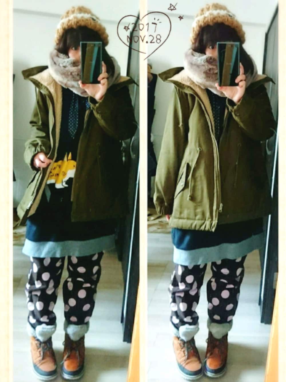 今朝は寒かったけど、昼間はあったかいです。7℃もある! 雪がぐちゃぐちゃ溶けて、日陰では凍ってて大変なやつ。 昨日に引き続き、NIRAME.COの福袋に入ってたシリーズ。 難易度高いプッシュぱんつ。別名アポロチョコぱんつ←勝手に命名 形がとてもよくて履きやすいけど色と柄にいつも戸惑います(笑) このコーギーパーカーワンピと前も合わせたことあったな…と、上にモッズリバー着てみました。 お、わりと地味に見えるかも!!!! モコモコスヌードとニット帽で、ちょっと柔らかめの色合いに。 昨日書いてた左下奥の親しらず、さっき抜きました。 …なんと3秒!! 「はい、抜くよ。ゴスッ!はい、抜けた。」 わたしと歯科助手さんたち 「はやっ!!!!」 早すぎてビックリして何が起こったかわかりませんでした。 無事でよかった。