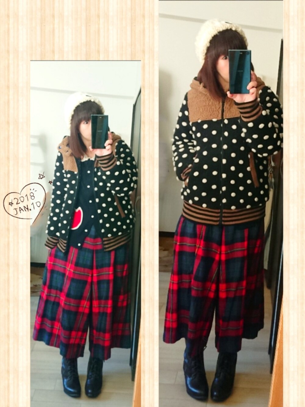 やっとアップできた今日のコーデ! しぃちゃんもネルコットンオソロだったー❤️嬉しい嬉しい☆ 今日は午後から猛吹雪になるかもと天気予報が言ってたのでリバポンダウンを引っ張り出しました! 本気で寒いときや猛吹雪のときに活躍する、あったかいリバポン。 軽くてふわふわで、ドット柄に見えて、実は立体的なポコポコ。 重宝してます。雪だるま感ハンパないけど。 しぃちゃんが、色ちがいのリバポンにネルコットンを合わせてすごく可愛かったから真似してみたコーデでした。 真似っこです。 靴はマーチン履きたいけど滑るから、滑らないブーツ。 ネルコットン、2回ウエスト折ってます。 雪についちゃうから(笑)