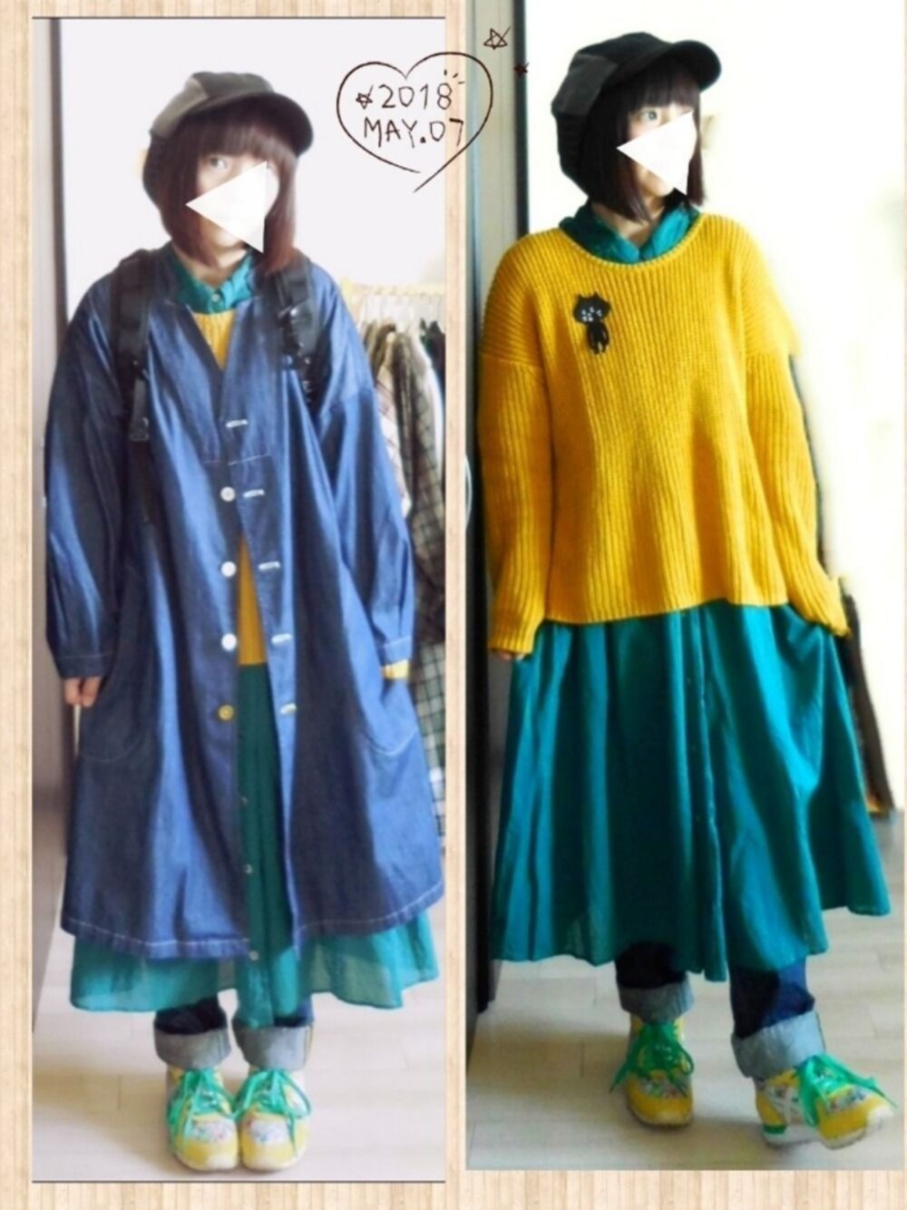 失敗コーデだな…と画像を見て思いつつも、ゴールデンウィークも明けたのでアップ。 今日の主役はオニツカタイガーの花柄のスニーカーです。 古着屋さんでひとめぼれ☆ 500円で購入です。可愛いほんと可愛い履きやすいかわいい。 このスニーカーと色を合わせてみようと、黄色ニットを緑色のワンピースに重ねてみました。 ワンピも古着屋さんで購入。 オーガニックボイルがまさか激安で売ってるなんて…!とビックリ。 しかし緑色、なーんか似合わないなと思います← でも可愛いから色々着倒す!!夏に向けて痩せて似合うようにする!! ワンピをニットで分断しすぎたなというのが失敗点です。 もっとワンピもニットもスニーカーも可愛く見えるように考えよう。 五月病にならないように、今月も頑張って働こう…。