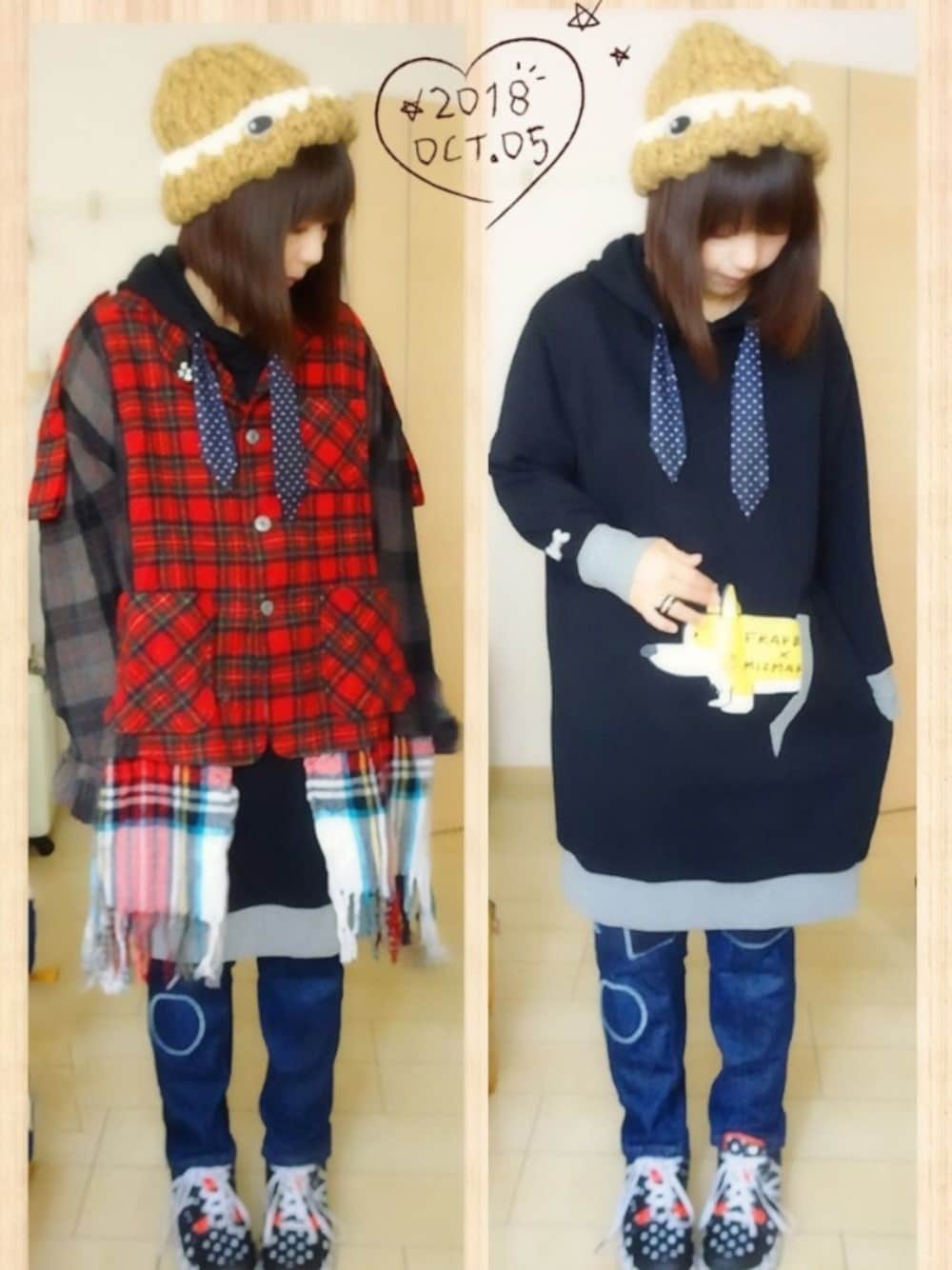 朝、玄関で靴を履こうとしたら緊急エリアメールが! エリアメールに驚いて足を踏み外しました← 揺れは震度3で横揺れだったので、大丈夫だったけど…あの大規模停電から1ヶ月。 本当の本震がきたのかと思って、まだ心臓ドキドキしています。 もう朝は5℃とかだし、これで停電されたら困る… 今日のコーデは、わたしの大好きなコーギーのパーカーワンピです。 思わず頭撫でたくなります。 ネクタイみたいな紐も可愛くて。 寒いのでネネットのデニムとニンカンのチェックリメイクジャケットを。 首もと寒いからストール持ってきたらよかったかな。 このリメイク、後ろどうなってんの?と質問があったので、小窓に後ろ姿をのせてみました。 地震に台風にほんとどうなってんだろ。