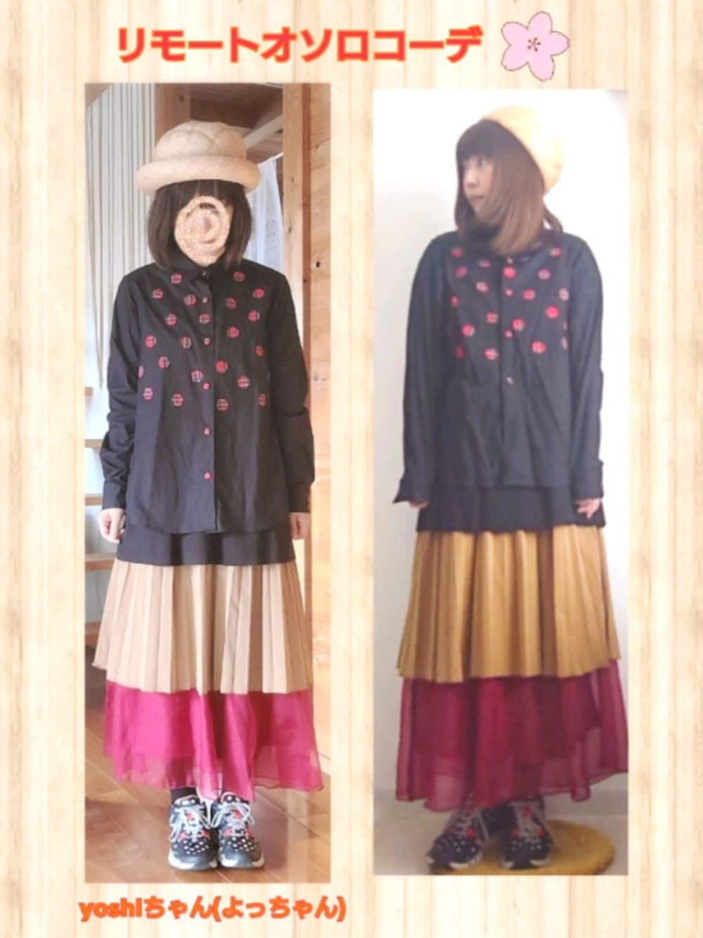 やっと時間つくって撮れたーー!! wearで出会ってリアルお友達になってもらって数年…! 大好きなよっちゃんとリモートオソロコーデ☆ シャツもスカートもスニーカーもオソロ❤️ 帽子はKENTさんのメロンパンとフレンチクルーラー♪ 全身大好きなコーデ。 とかいって、よっちゃんが考えてくれたコーデです\(^o^)/さすが! 早く会いたいね。毎年、3回は会っていたのにー! とりあえず夏まで待つ\(^o^)/ 出会ってくれてありがとう✨ 私のブラウスの様子がおかしいことに気づいた方は、いますかね。 そう、ボタンがあちこち足りないんですよ←