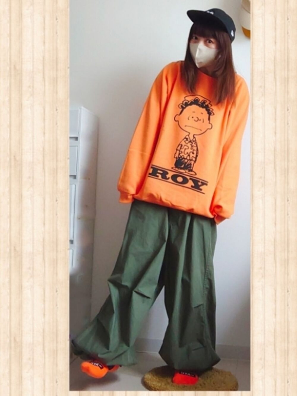 私がどっぷりまだハマっているゲームのキャラクターのカラーはオレンジです。 推しカラーってやつです。 一目惚れで購入したオレンジのスウェット。 大きめMサイズで着心地良いです☆ 裏毛だから、肌寒い夜も上着いらなかった! ビームスボーイのカーゴパンツに、にゃーのオレンジ靴下&キャップ。 マスクは超快適マスクのスマートスタイルというやつです。 やっとベージュ見つけた。 ゆったりゆるゆるコーデで、ゆったり仕事が…いや、ゆったりはできなかったな… 推しカラーで元気は出ました\(^o^)/