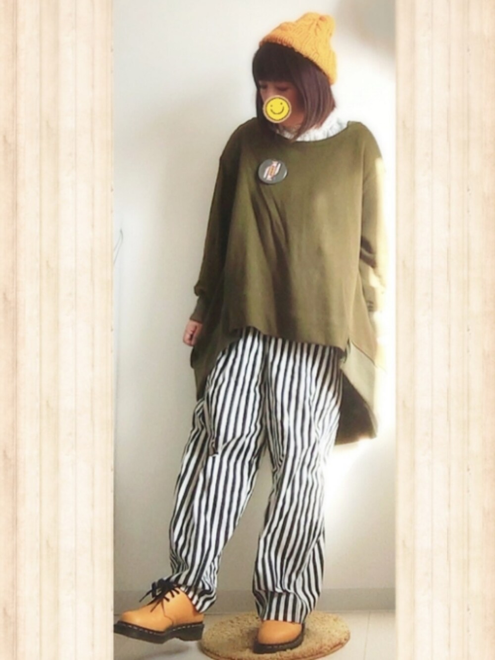 コロナワクチン1回目を日曜日に接種し、昨日の午後までわりと苦しんでました。 極度のアレルギー持ちなので、打つのは医師と相談のうえ…それでも迷いましたが打ってみたらこうなったみたいな。想像より軽度だったけどアナフィラキシー。 2回目は更に医師と相談のうえですね。 とりあえず生還できてよかった← 3回目はどうなるんだ! そんな今日は夢でサーカスパンツを履こう!となぜか見たので(笑)andRのお気に入りパンツ。 ゆるいスウェットが着たかったので後ろが長いカーキのスウェットに合わせました。 黄色いマーチンがなんとなくサーカスっぽいかなって。 上着がないと、帰りは夜9時ぐらいになるから風邪引くので、なんか羽織ります。 今の気温は10℃です。秋ですね。