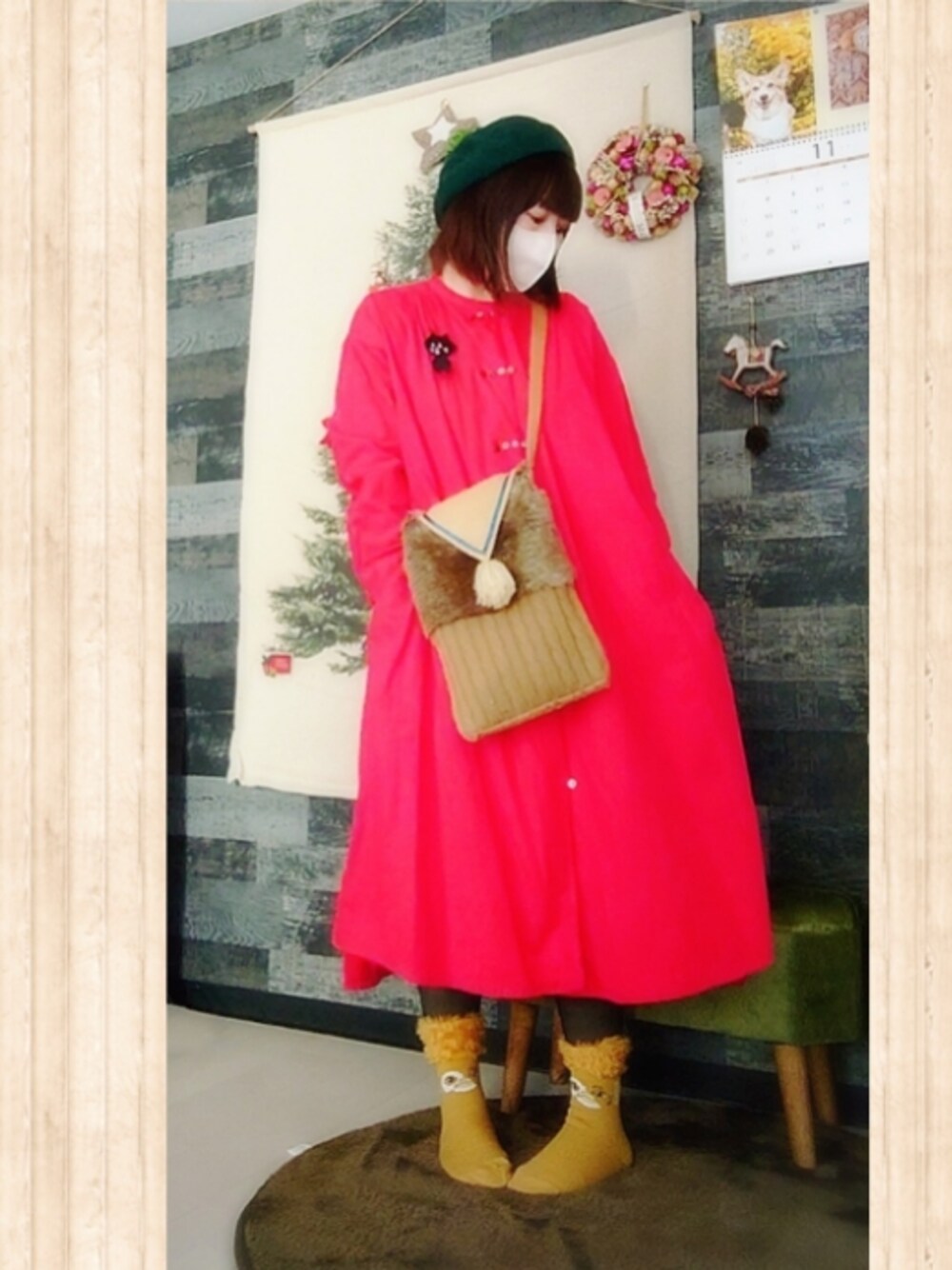 わたしが立っている横にはストーブがあって、フワーッと暖かい風が出てきて、スカートがフワってなってます。 去年の春にクリーニングに出してから着ていないのを思い出したサボンの赤ワンピ。 こんなに赤かったっけなと今更ビックリするぐらい赤かった(笑) 買ったのは4年前だったかな… 厚手なので冬でも着られます。 なんとなくクリスマスカラーになったけど、靴下はグレムリンです。 ファーバッグと色が合ってるからまぁいいか。 もちろんコート着ます。 0℃だもの。今の気温…。