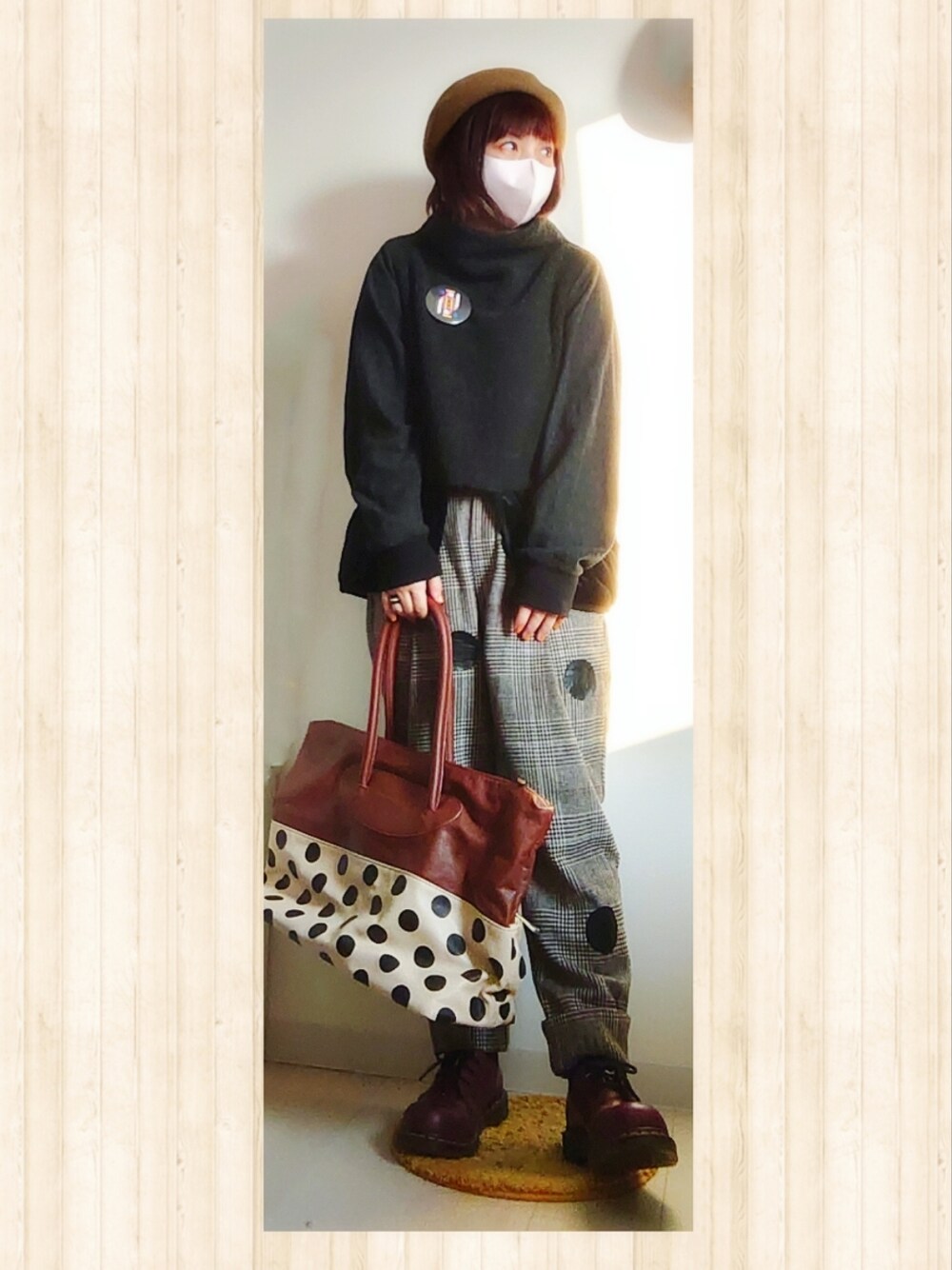タグがタートルネック…これは半タートルネック? ベッドサイドドラマのフォーチューテラープルオーバーは、下がキルティングになってて形も可愛くて一昨年からたくさん着てます。 半タートルネックのおかげで、髪の短さが少しカバーされてるような。 わかりますかね、この切りすぎた髪の毛。 ベレー帽かぶると髪の毛ほぼ隠れるみたいな(笑) まぁ髪も短いし、ということで← アンティカのドットツイードパンツでおとなしい感じにしてみました。 スナオクワハラのドットトートバッグは、千葉のひよちゃんとオソロです。もう何年前だ?? エイネット時代のスナオクワハラです。 やはりドット柄好き。 そういえばノイズメーカーさんがZOZOTOWNに載せてくださいましたー! とても可愛い赤と水色のパーカーワンピを載せてくださり、本当にありがとうございました☆