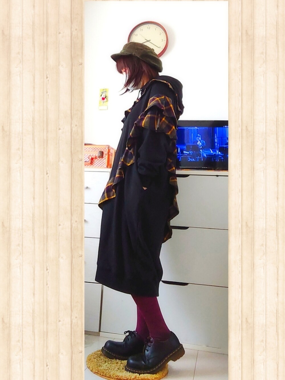今朝も時間があまりなかったので自分の部屋の反対側で。 壁真っ白のほうが写りが良いのだけど…お部屋改装中なのでグチャグチャなんです← 久々に…っていつも言ってる気がするけど久々にフラボアのフリチェックを着ました。 フラボアのパーカーがとても好きな一番の理由はフードの立ち上がり方です。どのパーカーも立ち上がり方がとてもよい。好き。 だから手放すこともなく何着も買ってしまいます。 マーチン履いたけど、外はツルツルグチャグチャなのでブーツに履き替えます。 タイツはまだまだ必要。