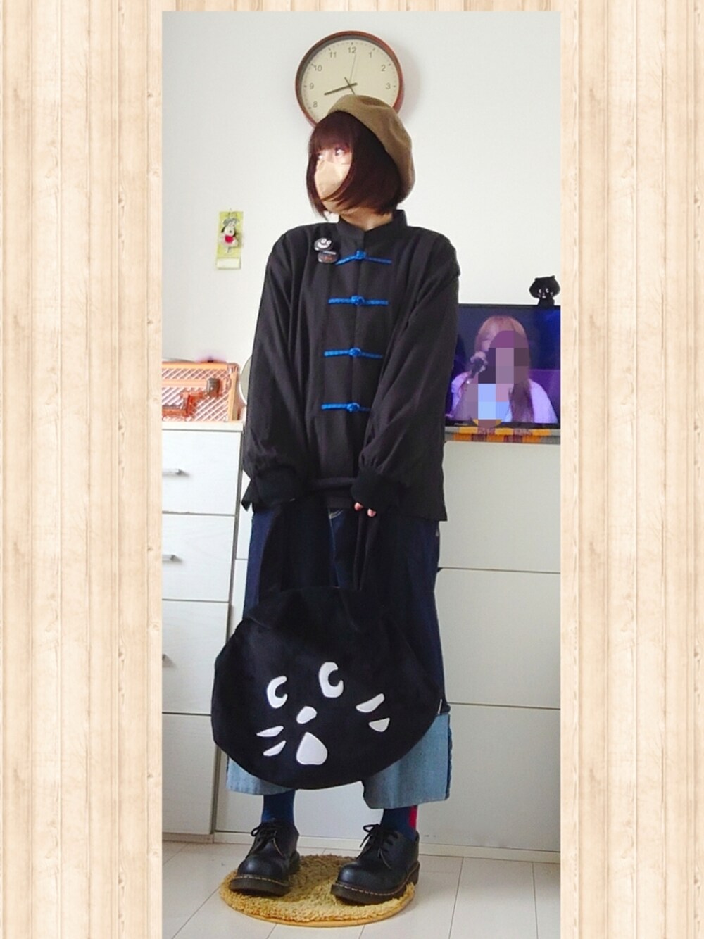 ちょっとずつ部屋の片付けが終わってきました。 あともう少し!! 今日はベッドサイドドラマの新作、フェイクチャイナシャツがメインです。 チャイナ型の服は今まで何度となく失敗して手放してきました。 なんか似合わなくて…ボアがついてる服もそうです。あとはフリースジャケットとか。 挑戦してもしても似合わん。 そんななか、ベッドサイドドラマならきっと…!とペイペイで割引になったタイミングで購入しました。 少し厚手で羽織としても着られるチャイナシャツ。 可愛い。大きすぎない。サイズ1で着丈もよい! よかった!と自画自賛しましたが… うさんくさい外国人の匂いが消えないので(笑) にゃーでごまかしました。更にうさんくさいかも。 フラボアのサルエルデニムに合わせてベレー帽かぶって…ベレー帽がうさんくさいのかな。 とにかくお気に入りになったので、1枚でも羽織でも使い倒そうと思います! 中にはボーダー着てます。ちょっと前が開くので。