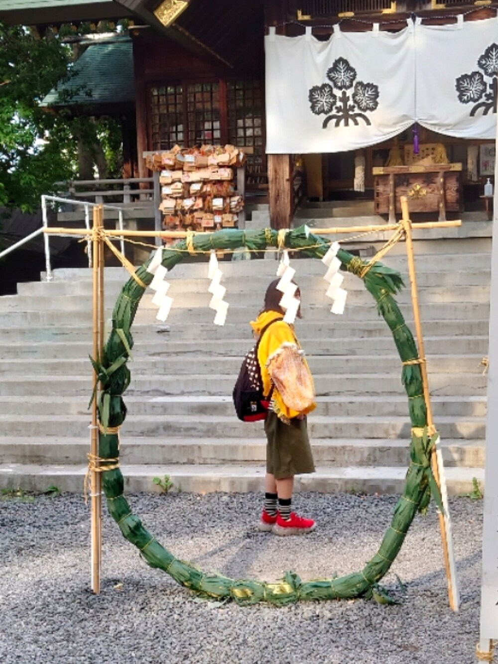 昨日はとても良い一日でした。 友達が独立して営業をしているアロママッサージサロンに行って全身を揉みほぐしてもらい、そのあと一緒にふわふわかき氷を食べ、更にはカラオケ2時間行って、神社の茅の輪くぐりをして… 写真は茅の輪くぐりをやりきった人です。 回り方が難しくて間違えたけど、きっとご利益あるでしょう← キャシーのリメイクパーカーにユニクロマルニのパンツ、久々に使ったフラボアのリュック。 いいお天気だったので(半袖はまだ無理)軽快な服装を目指しました。 2枚目はふわふわかき氷。 なぜかかき氷だけは早食いできます。