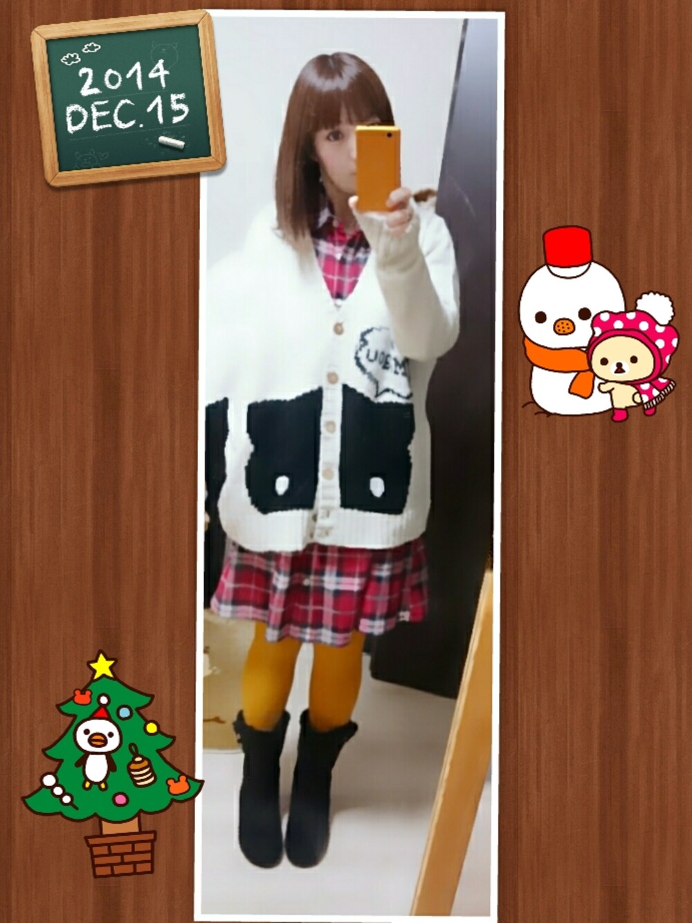 カーディガンは分厚くてぬくぬく。 寒すぎ雪降りすぎ。 ジェリービーンズの冬靴は底にガラスをつぶした?滑り止めがついてて滑らないし中はモコモコだし歩きやすいです☆