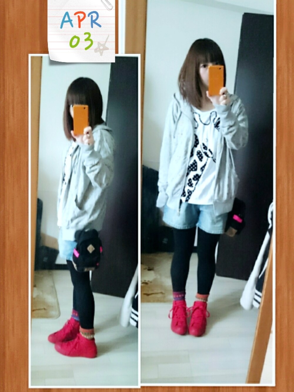 熊の耳ついたポーチは、どっかの雑貨屋さんで買ったもの。 デニムは10年ぐらい前のやつ。 コンバースは大好き。 これからback numberライブに友達と参戦‼ Zeppだから暑いよね。でも寒いよ今日…