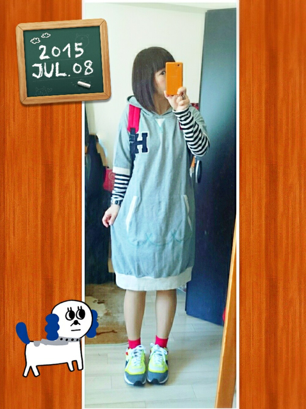 お休みなのでフラボアのパーカーワンピとスニーカー スニーカーはサイズひとつ間違えて24.5を買ってしまいました…でも履きやすいから いいか。やたら足大きく見えます。 本当は23センチの足です。