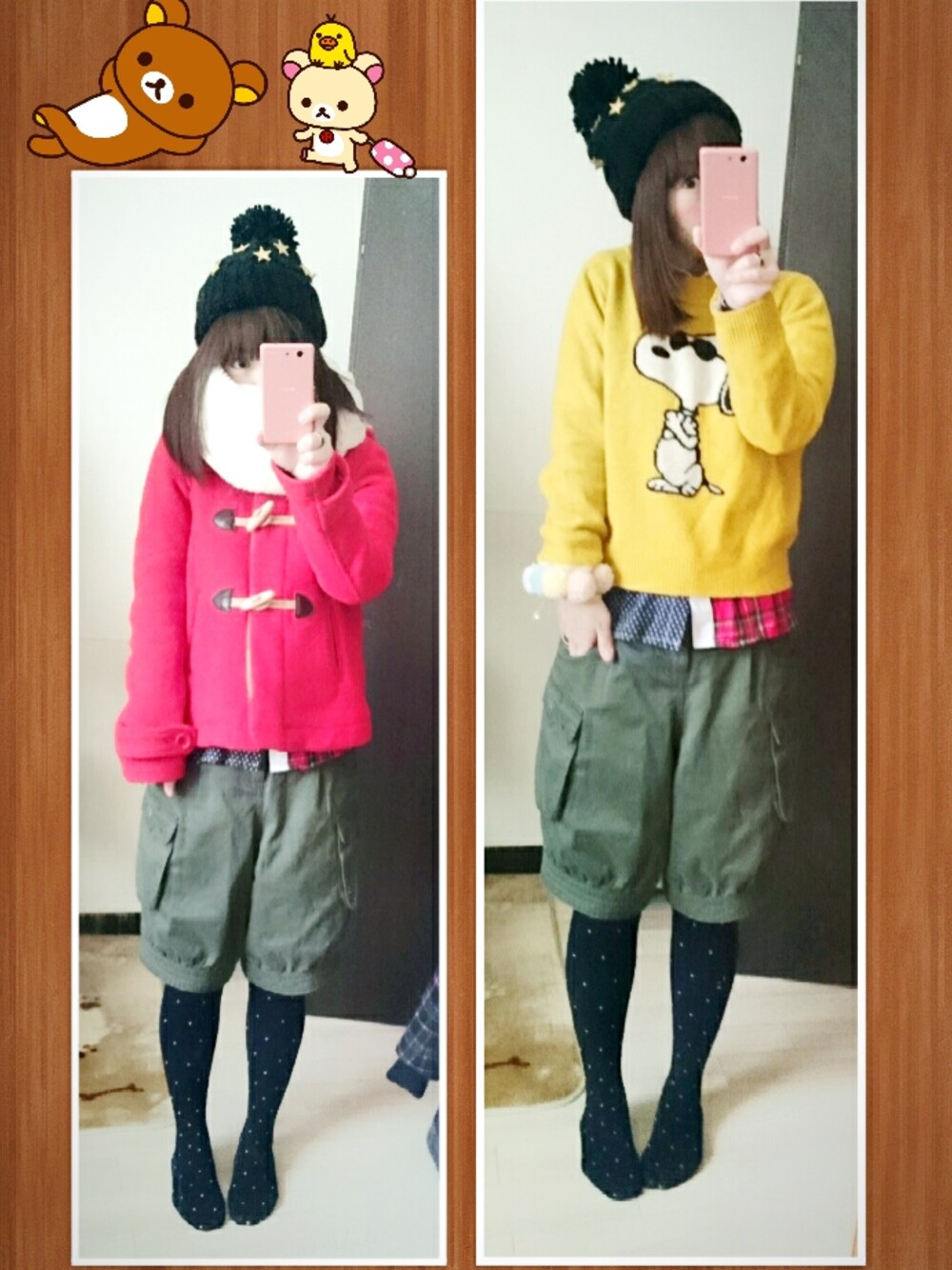 仲良くさせてもらっている、しぃさん❤がスヌーピーを着ていたので☆ 中のクレイジーシャツは昔、雑貨屋さんで買ったもの。 オレンジ、黄色、緑の組み合わせが好きなのかもです
