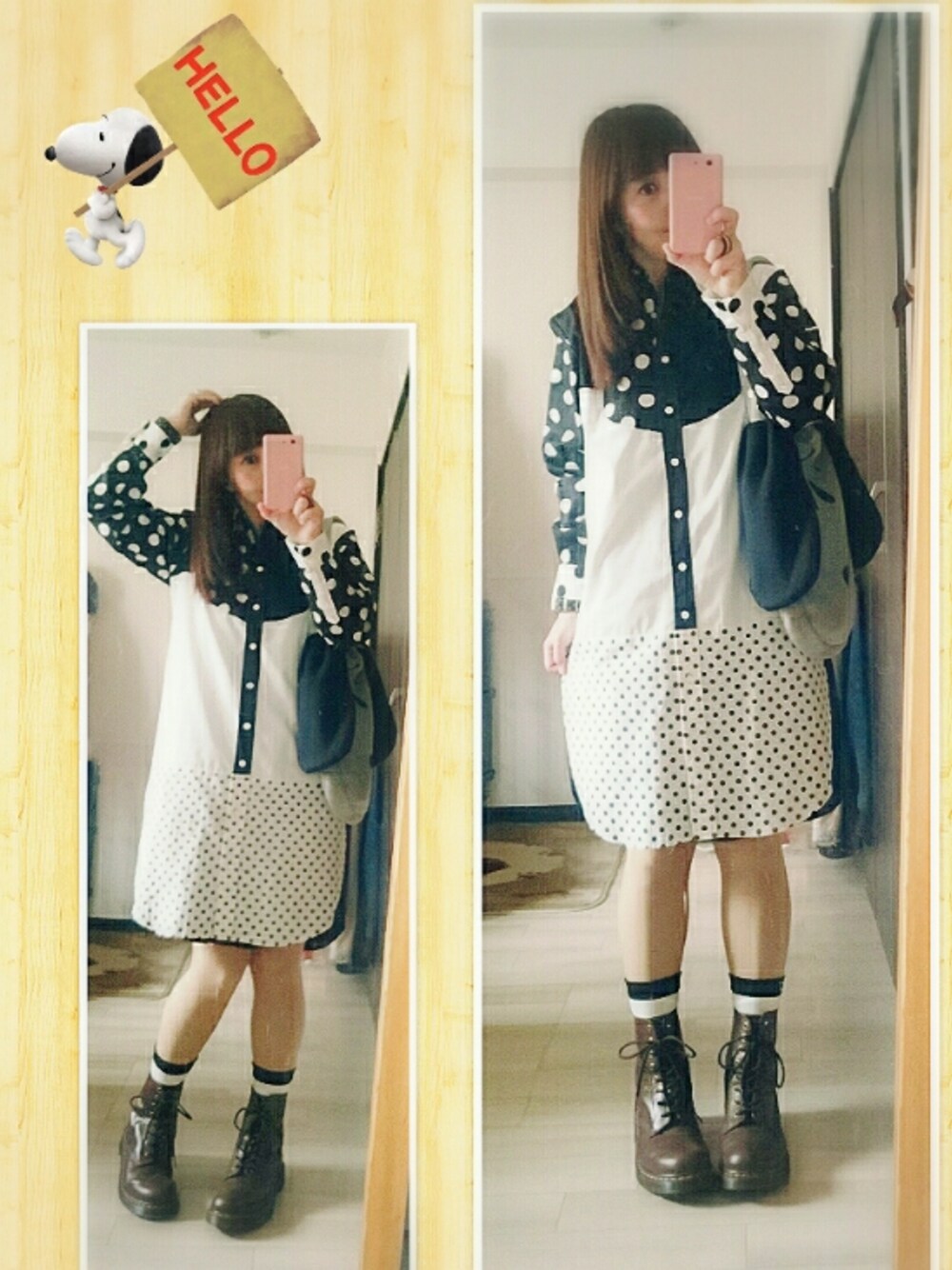めったに台風の影響をうけない札幌… 今回はまともにうけてます。 今朝は突然スコールみたいな雨でJRいきなり止まったり遅延したり。 事務所ギリギリ着でした。 そんな雨の日の暗い気分を吹き飛ばすには! やはり、にらめっこーでだろう…ということでNIRAME.COの五月雨しゃつワンピースです。 本当に本当に可愛くてテンションあがります☆ 今日は雨だから雨の日マーチン部! 茶色マーチンにしてみました。 左側の頭かいてるのかポーズは、いずっちさんのポーズを真似した、しぃちゃんの真似です← わたしがやると四十肩で肩があがらないので(*_*)頭かいてるようになります…が、袖の柄が見えていいかもね…(笑)