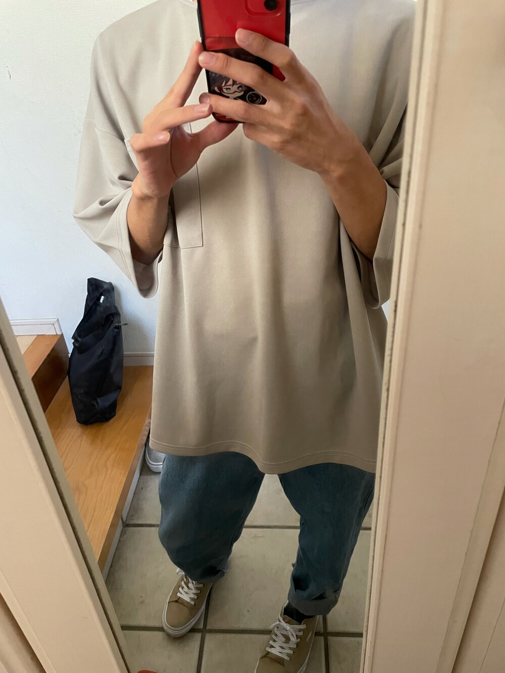 プティ♔のTシャツ/カットソー「【neos -addictive design-】ルーズシルエット キーネック Tシャツ タンクトップ アンサンブル」を使ったコーディネート
