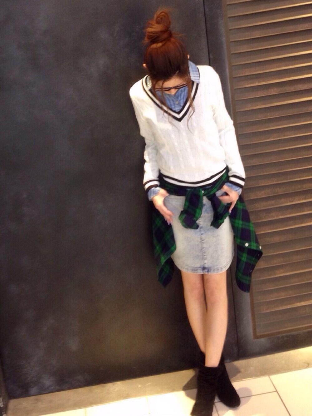 ピックアップタグのチェック×チェックに乗っかってみました👯🌟 思いっきりチェック×チェックではなく、チェックデニムシャツをインして、さり気なく!! 『デニムオンデニム』でもあり『チェック×チェック』でもある、盛り放題コーデです🙈 インナーのシャツと腰巻きのシャツを逆にしても◎✨ デニムのチェックシャツ、万能です!!