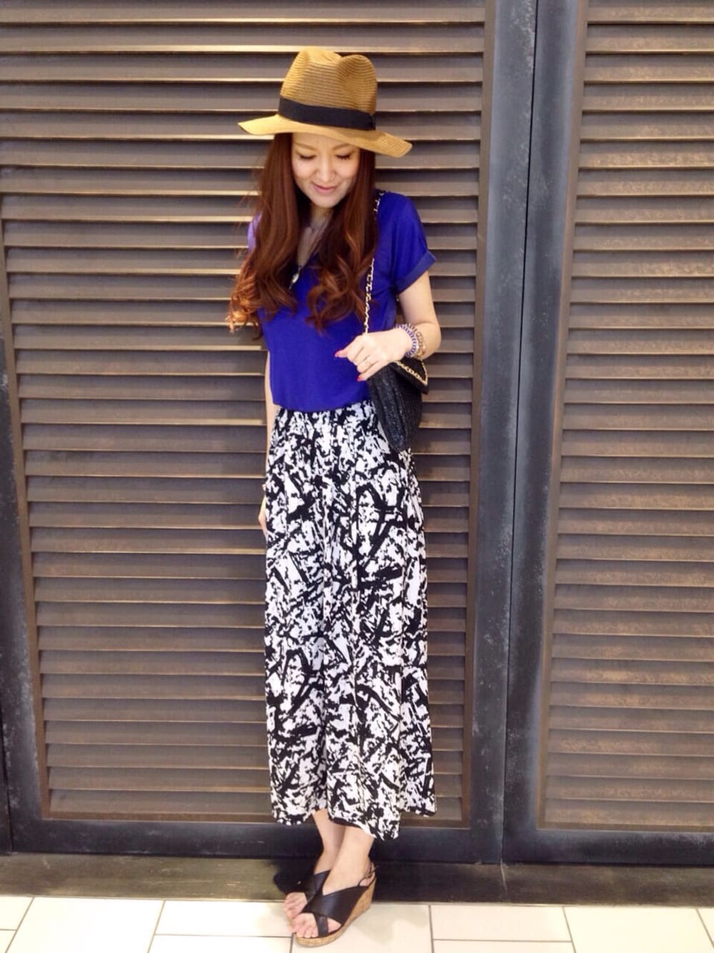 リゾートに行きたい願望で出来上がったコーデです( ´ ▽ ` )ノ このバギーパンツ、入荷して2秒で購入決めました!笑 生地もサラッとしていて、マキシスカートかと思いきやパンツという素敵さ♡ 独特の柄もまさにリゾート♡ ウエストはゴムなので、トップスも楽にイン出来ます♪( ´▽`) ちょっとトップスを出す感じの微調整もしやすいですよ🎶 そして、こちらのトップス、後ろがシフォン素材で透け感が良い具合になっております( ´ ▽ ` )ノ ブラックを選びがちなハットはあえてブラウンで♡ こんなおめかしコーデで、バリとかドバイとか行きたいですね。。。 今居るのはイオンモールですけども。。。