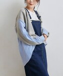 TAKAOKAのカーディガン/ボレロ「布帛ストライプ×ニット切替カーディガン」を使ったコーディネート