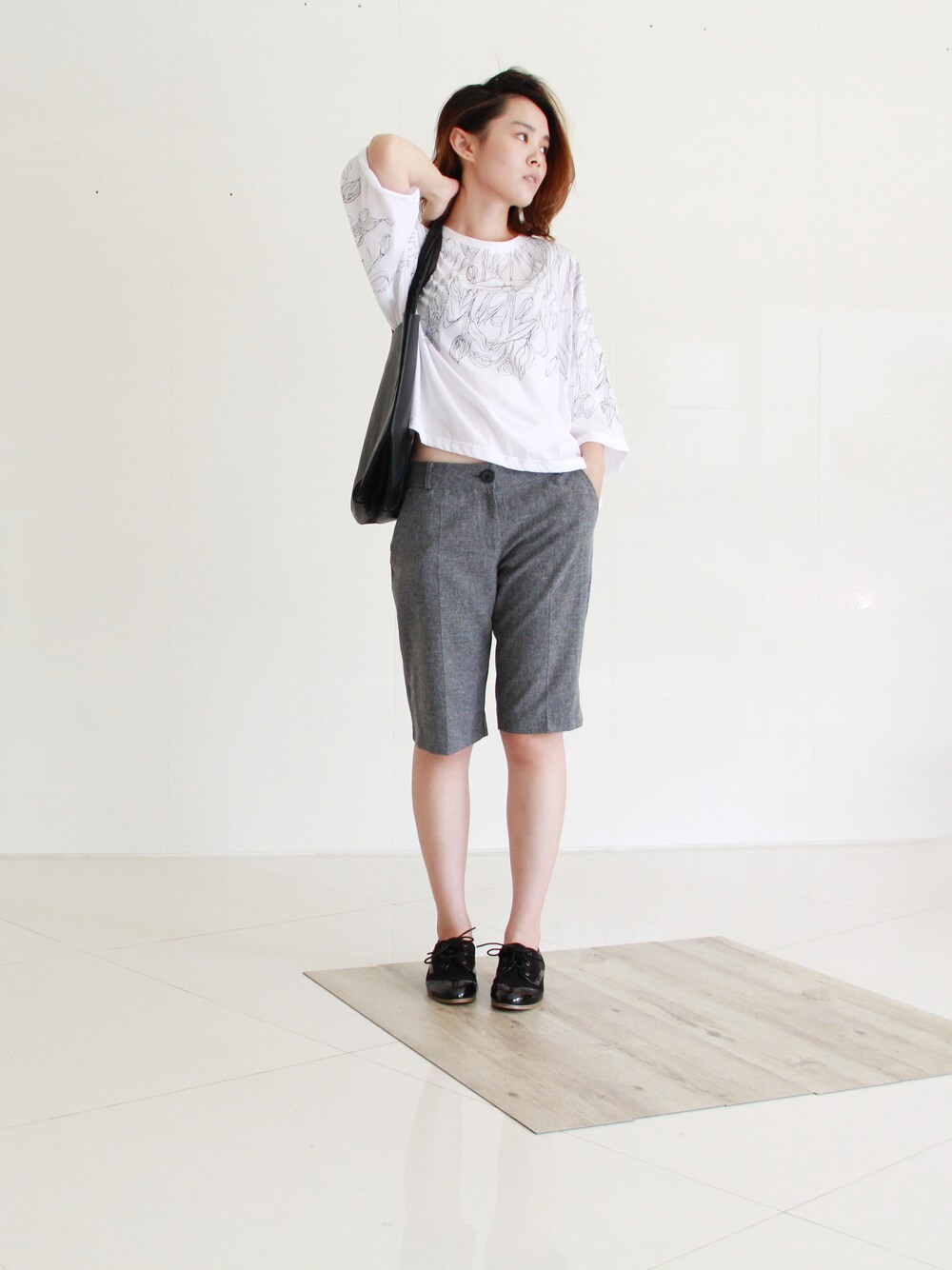 簡單的手繪線寬鬆上衣 搭配中性五分褲或寬褲