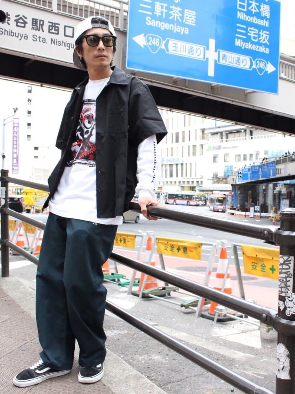 #yuyastyles ロンT x 半袖シャツのストリートスタイル🙌袖プリントと、フロントのパンチ🤜あるプリントがアクセント🙌 コーディネートのご参考にどうぞ🙌