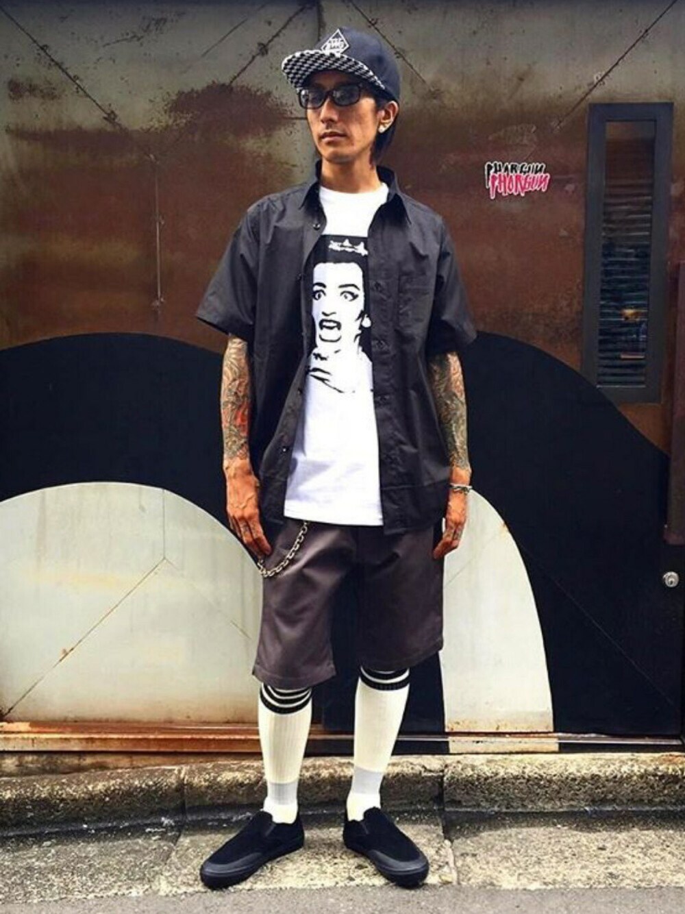 #yuyastyles 久しぶりのアップです!! サボってた訳ではないです……サボってた訳では… 全体的にモノトーンでまとめた、シャツスタイルです! ワークショーツにハイソックス、相性抜群ですね!! ワークワークしすぎないよう、インナーにはFUCKING AWESOMEのTシャツ、スニーカーにはLAKAIをチョイスし、スケート・ストリート感を加えバランスを取っています😎 コーディネートのご参考にどうぞ!