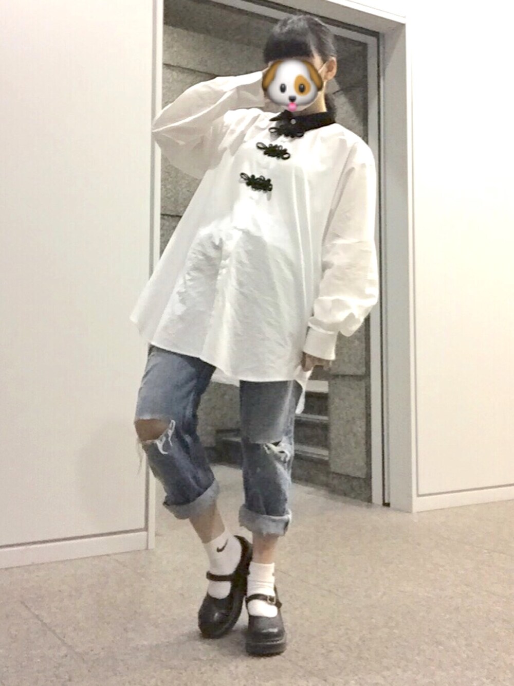 🇨🇳☁️🇨🇳☁️🇨🇳☁️🇨🇳☁️ 今日はチャイナシャツワンピを トップスとしてカジュアルに着ました^o^ 最近買ったダメージジーンズがお気に入りすぎてつらい やっと求めてたものに出会えた 早くかみのびろー 🇨🇳☁️🇨🇳☁️🇨🇳☁️🇨🇳☁️
