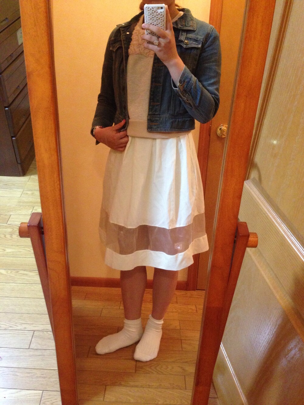 今日から学校開始! フレアスカート♡me トップス♡par avion 靴下、Gジャン♡不明 指輪♡Forever New