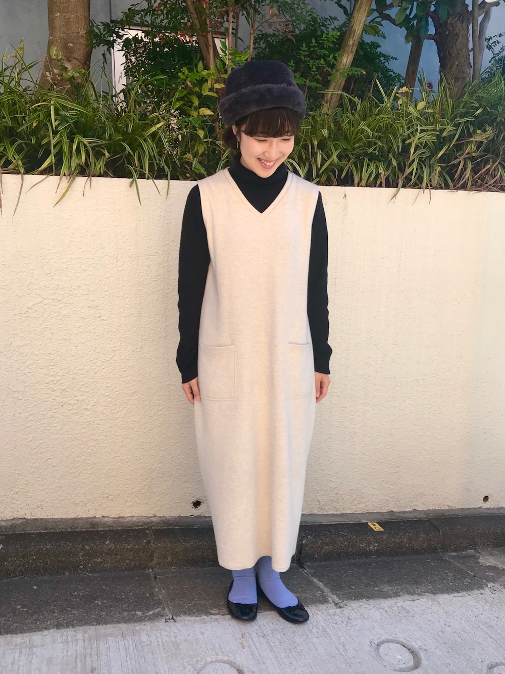 シンプルな色使いにカラータイツが映えるきれいなコーディネート。 大人っぽいモノトーンだけでは終わらせない着こなしがとても好きです。 ファーキャップもオリジナルでお作りしています。 小物もぜひPAR ICIで!!!!