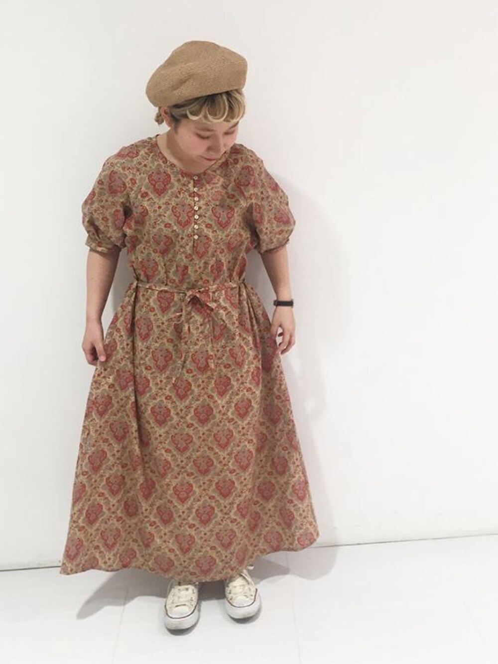 PAR ICI(PAR ICIアトリエ)のワンピース「フランスのペーズリー ボリューム袖ワンピース」を使ったコーディネート