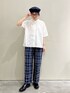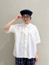 PAR ICI(PAR ICIアトリエ)のシャツ/ブラウス「【WEB別注カラー】先染めストライプ/無地 5分袖シャツ」を使ったコーディネート