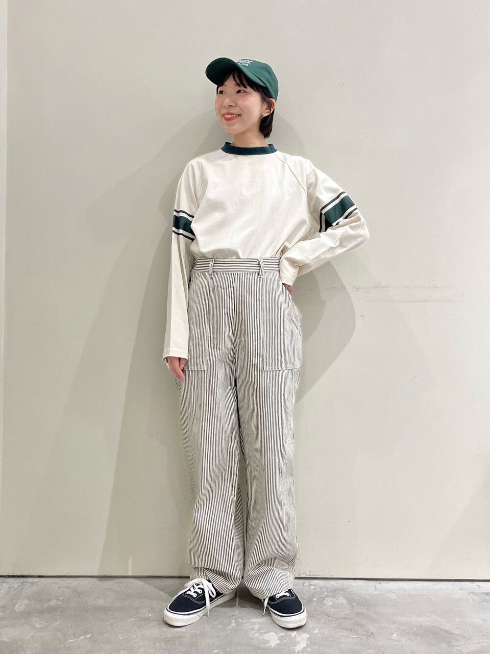 PAR ICI(PAR ICIアトリエ)のTシャツ/カットソー「ラインプリント カレッジ長袖プルオーバー」を使ったコーディネート