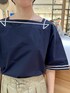 PAR ICI(PAR ICIアトリエ)のシャツ/ブラウス「オーガニックマグワッシャー スクエアネックマリンブラウス」を使ったコーディネート