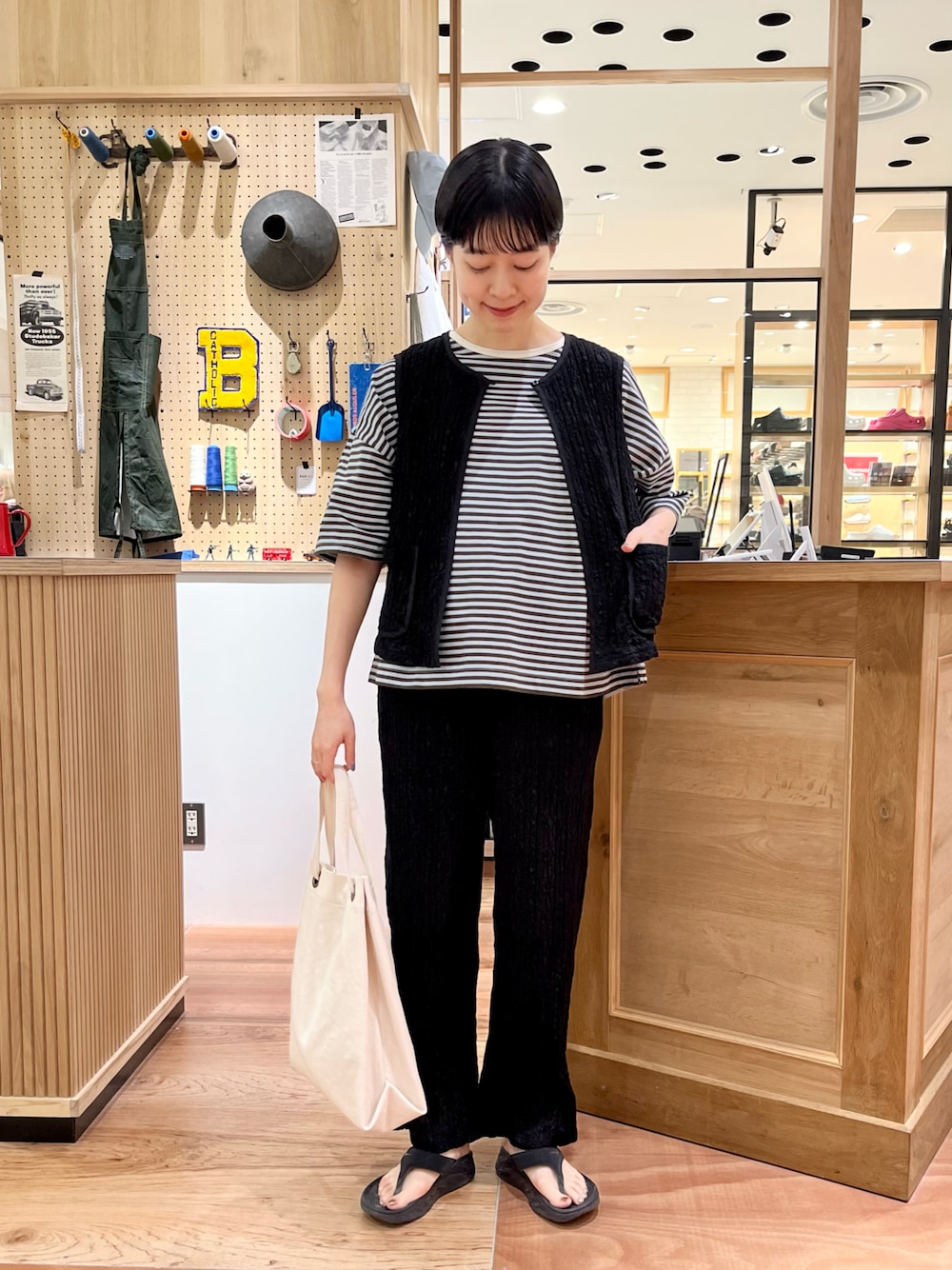 PAR ICI(PAR ICIアトリエ)のベスト「【WEB別注カラー】ストライプ刺繍 ベスト(セットアップ対応)」を使ったコーディネート