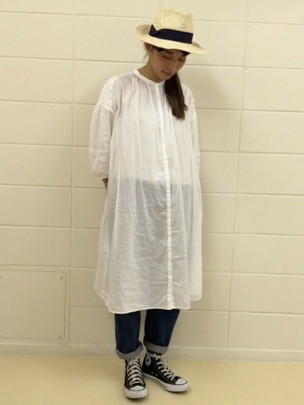 PAR ICI(PAR ICIアトリエ)のシャツワンピース「コーマローン製品染め ギャザーワンピース」を使ったコーディネート